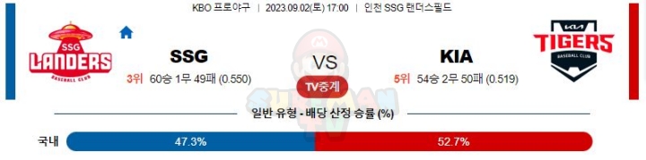 【KBO】 스포츠분석 9월 1일 SSG vs KIA 스포츠무료중계 슈어맨티비